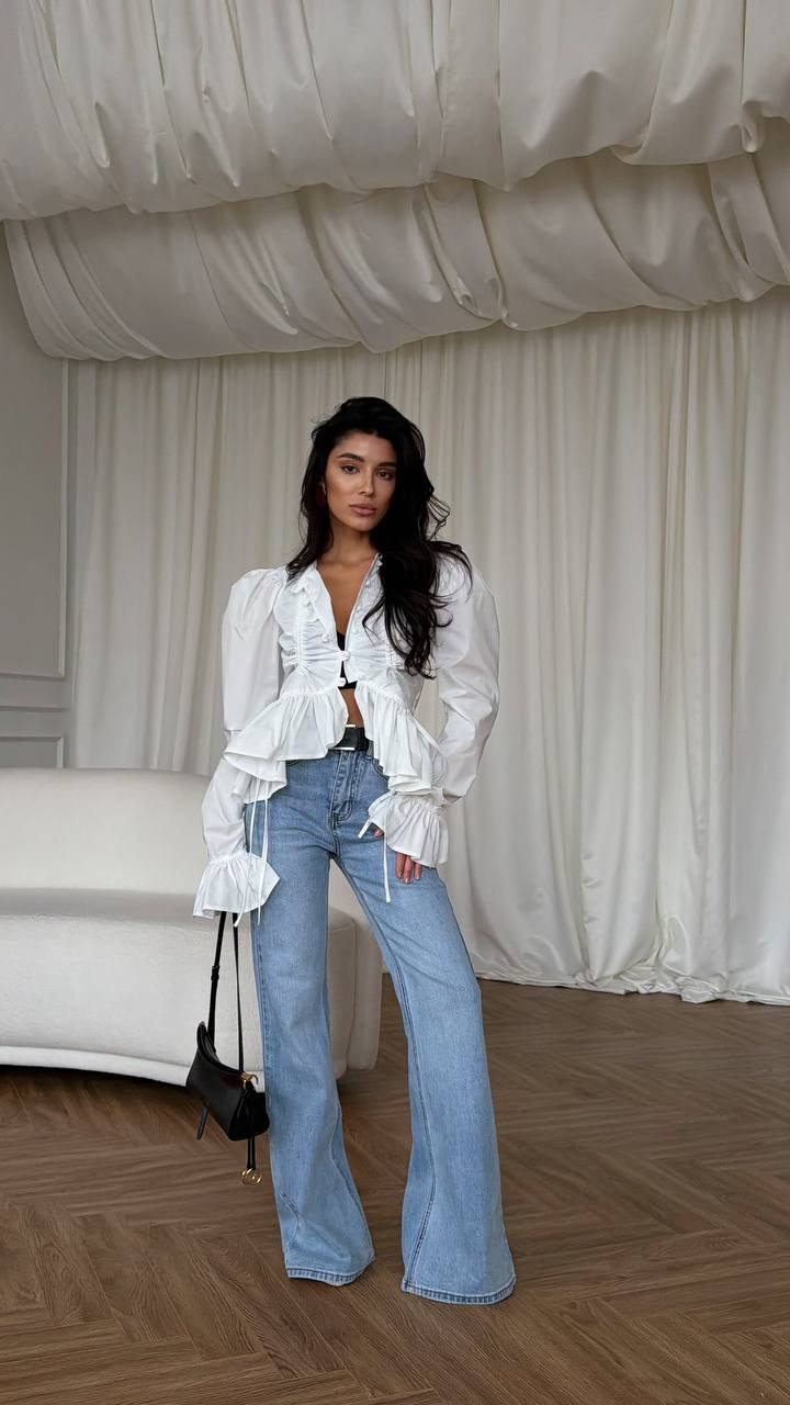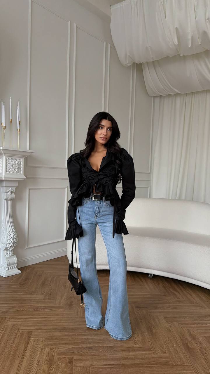 Zachwycaj lekkością i kobiecością w wyjątkowej bluzce, stworzonej dla kobiet, które kochają modę z nutą romantyzmu. Wykonana z delikatnej, przyjemnej w dotyku tkaniny, pięknie układa się na sylwetce, podkreślając talię i dodając stylizacji lekkości.