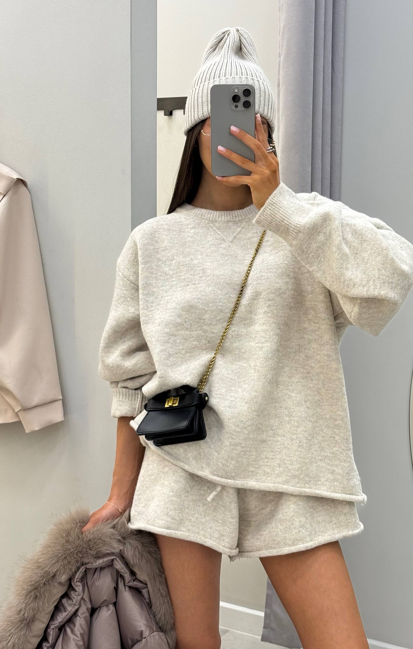 Minimalistyczny, a jednocześnie niezwykle stylowy komplet, który łączy w sobie wygodę i nowoczesny look. Oversize’owa bluza z długim rękawem daje poczucie swobody i otulenia, a krótkie szorty nadają zestawowi lekkości i dziewczęcego charakteru.