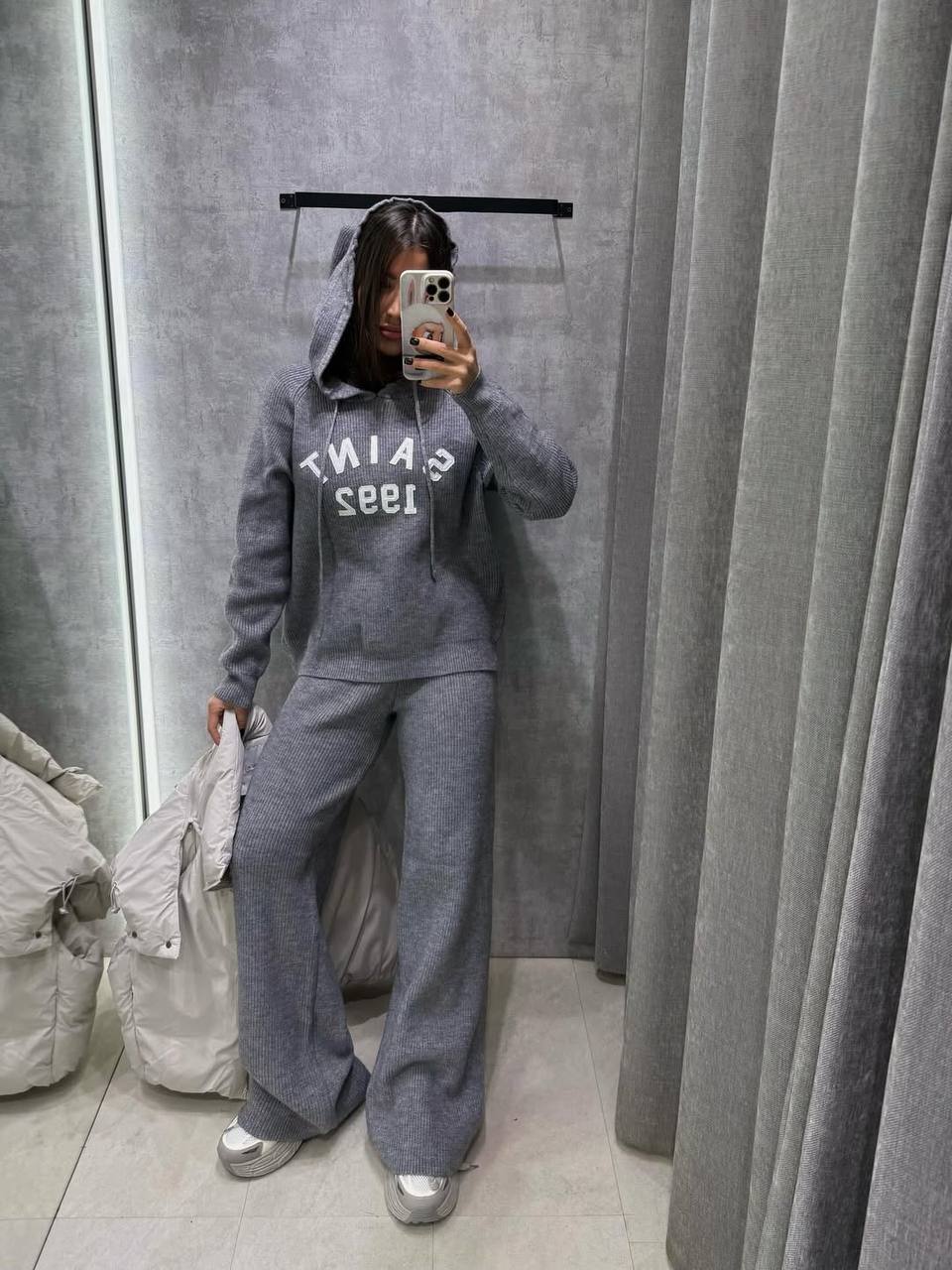Poczuj wyjątkowy komfort z nutą paryskiego luzu w naszym komplecie „Saint 1992”. Wykonany z miękkiej, prążkowanej dzianiny o wysokiej jakości, ten zestaw łączy elegancję i wygodę w idealnych proporcjach.