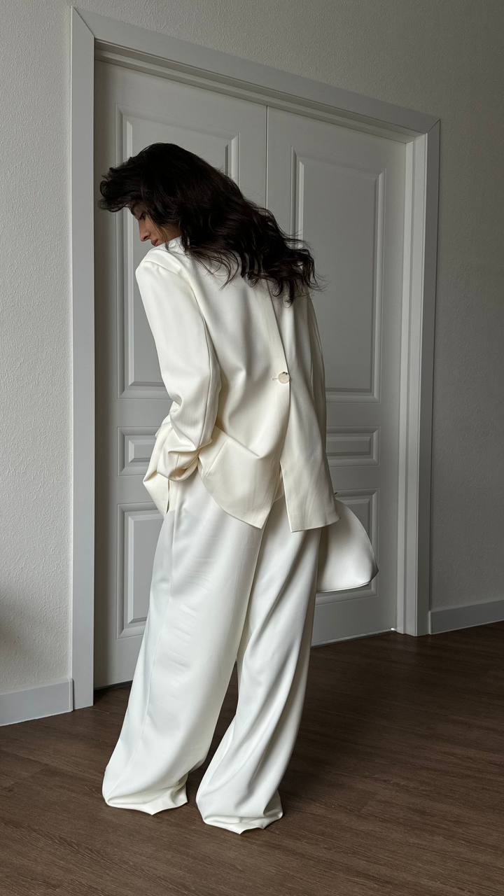 Nasza najnowsza kolekcja garniturów to kwintesencja nowoczesnej kobiecości. Oversize’owe marynarki i szerokie spodnie w stonowanych kolorach — od śmietankowej bieli, klasycznej czerni, przez głęboki brąz, aż po subtelny niebieski — tworzą wyrafinowane, a zarazem wygodne stylizacje.
