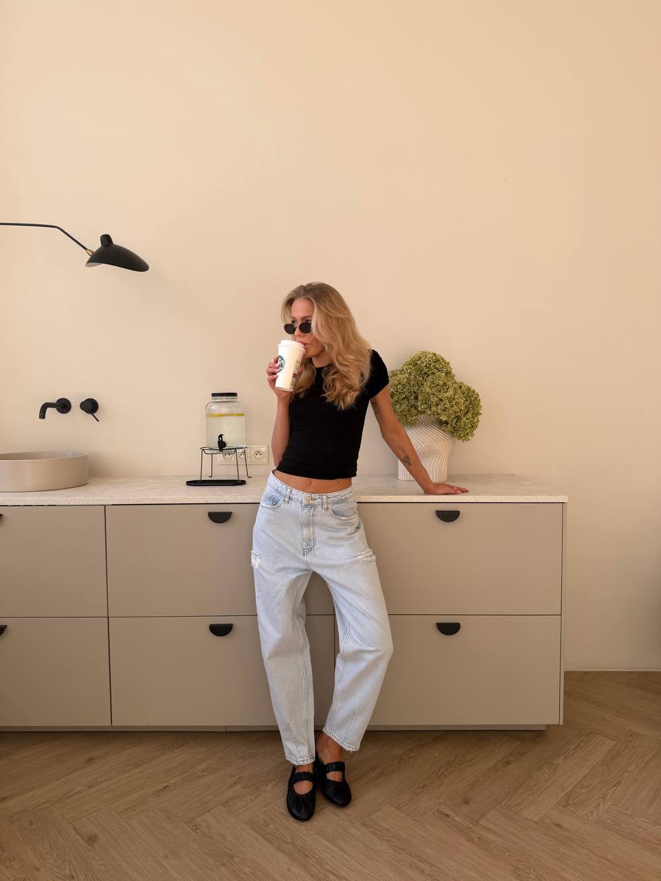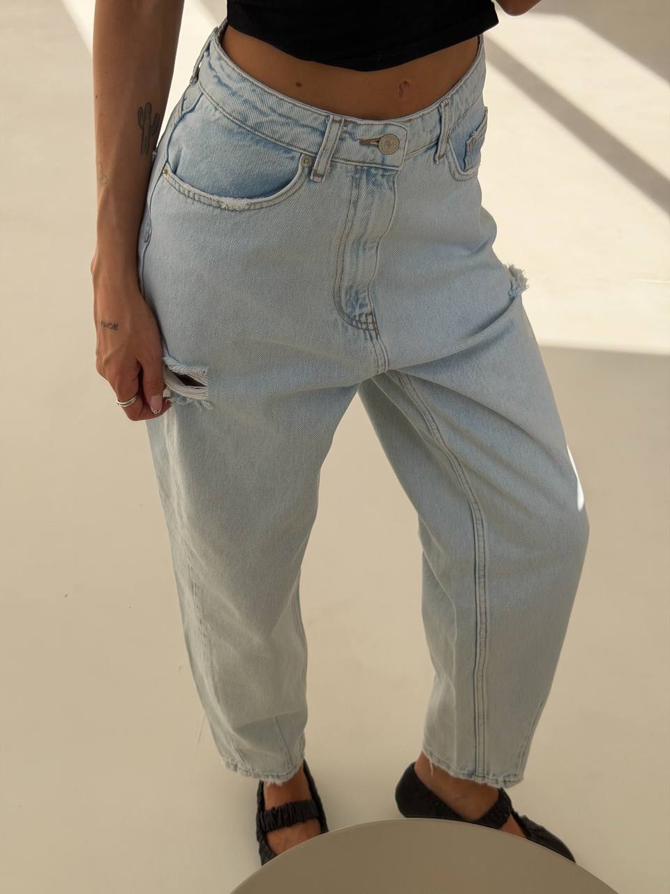 Jasne jeansy o luźnym, nowoczesnym kroju z wysokim stanem. Subtelne przetarcie dodaje im charakteru, a miękki denim pięknie układa się na sylwetce. Idealne na co dzień i do stylizacji „effortless chic” — noś je z topem, marynarką albo sneakersami.