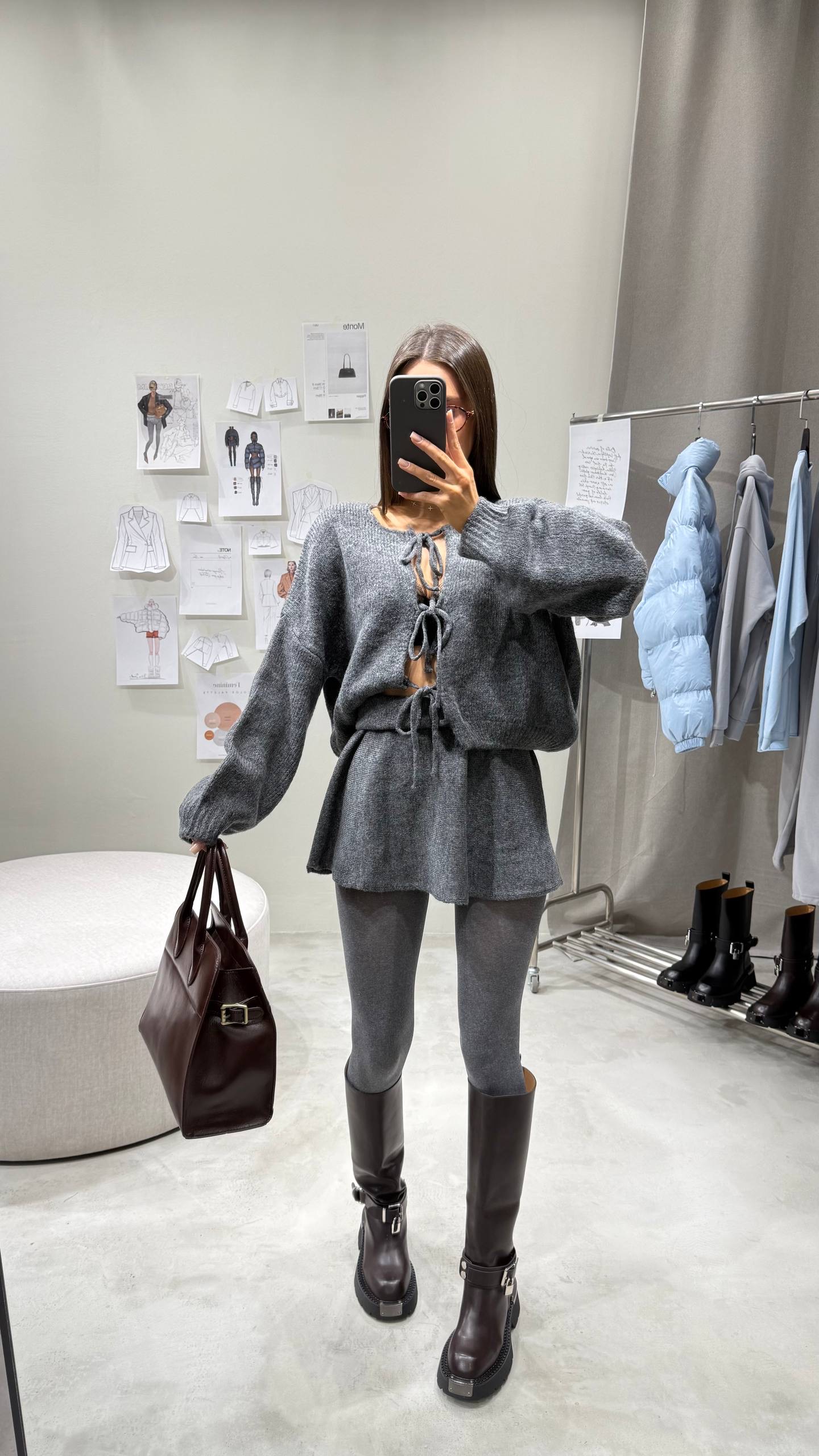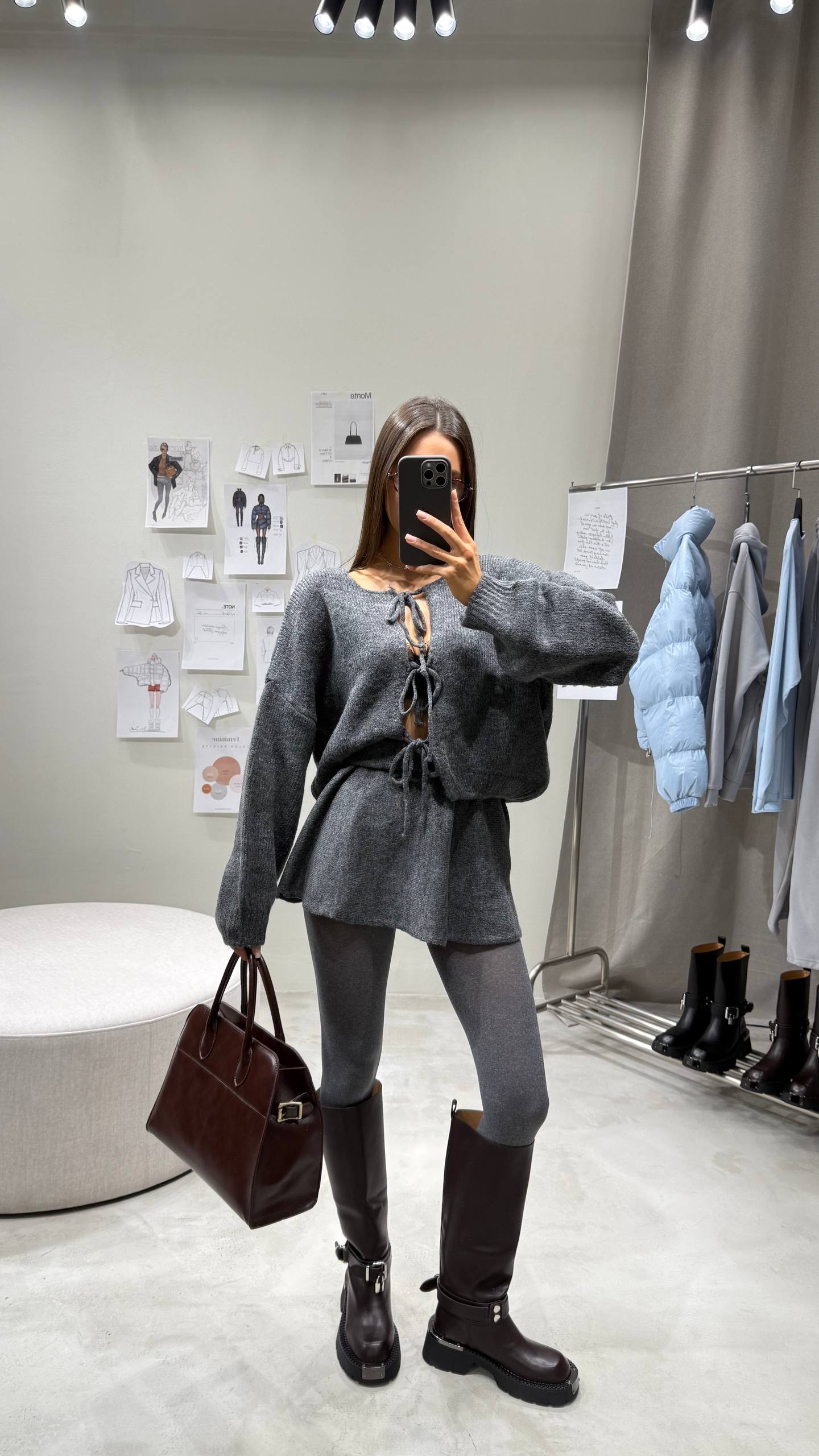 Dół to modowa interpretacja klasyki – dzianinowa mini do bioder, która tworzy efekt lekkiej, dziewczęcej struktury.