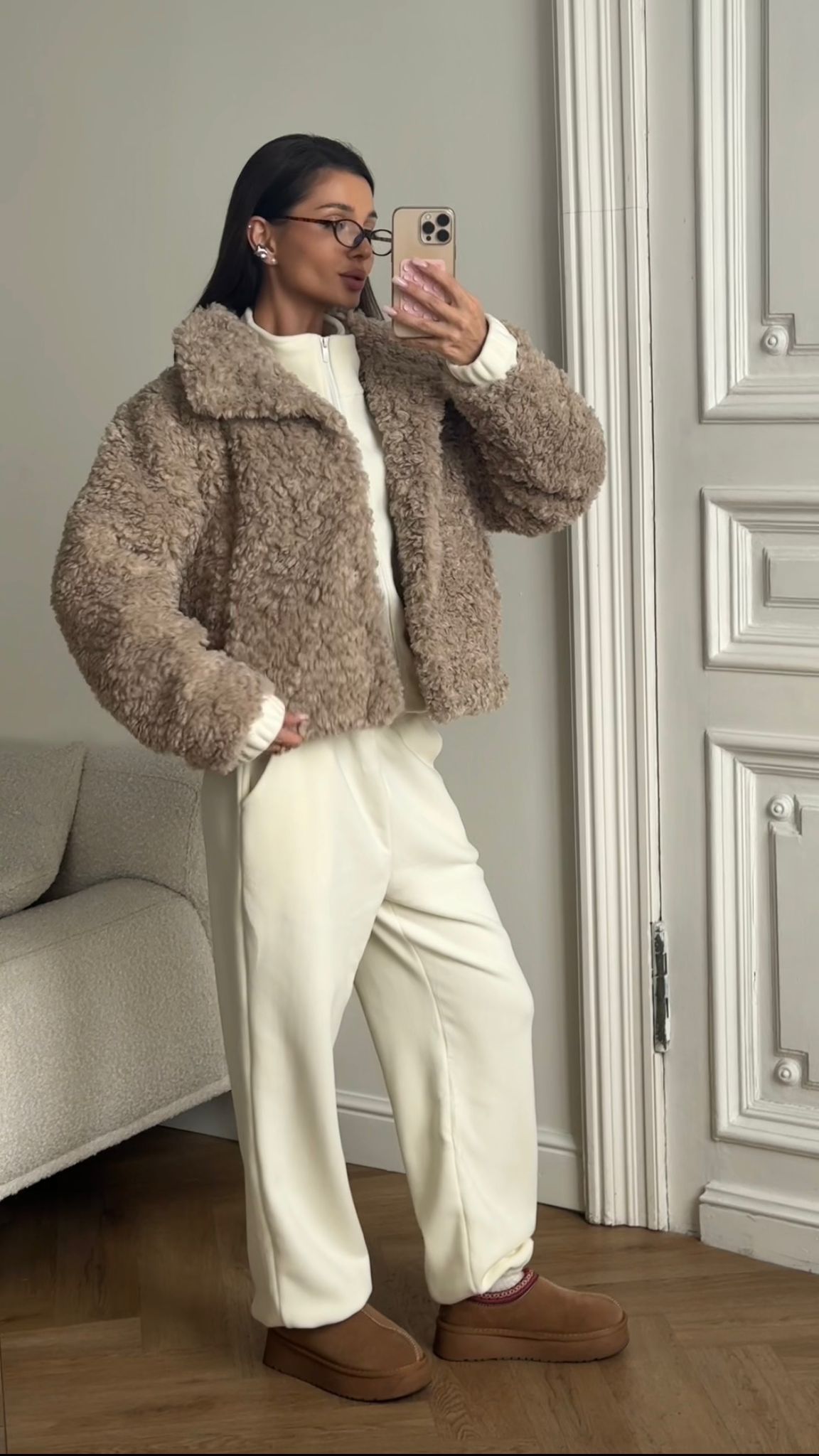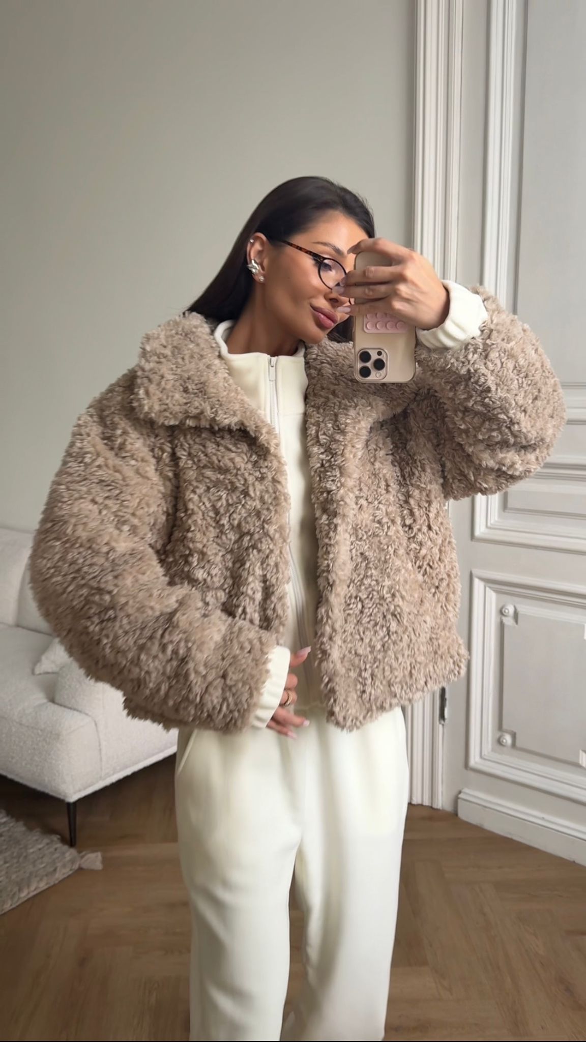 Kożuszek, który otuli Cię ciepłem i stylem w jednym. Miękki, przyjemny w dotyku materiał o puszystej fakturze sprawia, że każda stylizacja zyskuje wyjątkowy, cozy charakter. Luźny, oversize’owy krój zapewnia komfort noszenia, a elegancki fason sprawia, że pasuje zarówno do casualowych, jak i bardziej kobiecych looków.