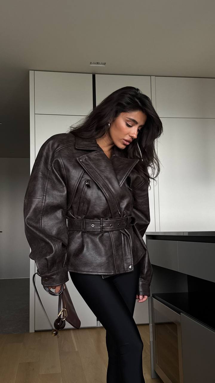 Poznaj kurtkę, która robi całą stylizację. Ekoskórzana, oversize’owa, z charakterem – z mocno zarysowaną linią ramion i podkreśloną talią. To nie tylko odzież – to manifest siły i kobiecości.W głębokim odcieniu czekolady, idealna do szpilek, sneakersów i miejskiego szyku. Noś ją, kiedy chcesz robić wrażenie.