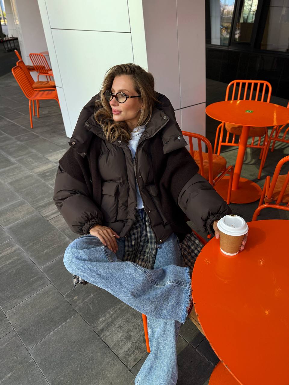 Pikowana kurtka puchowa w kolorze głębokiej czekolady – styl i komfort na chłodne dni