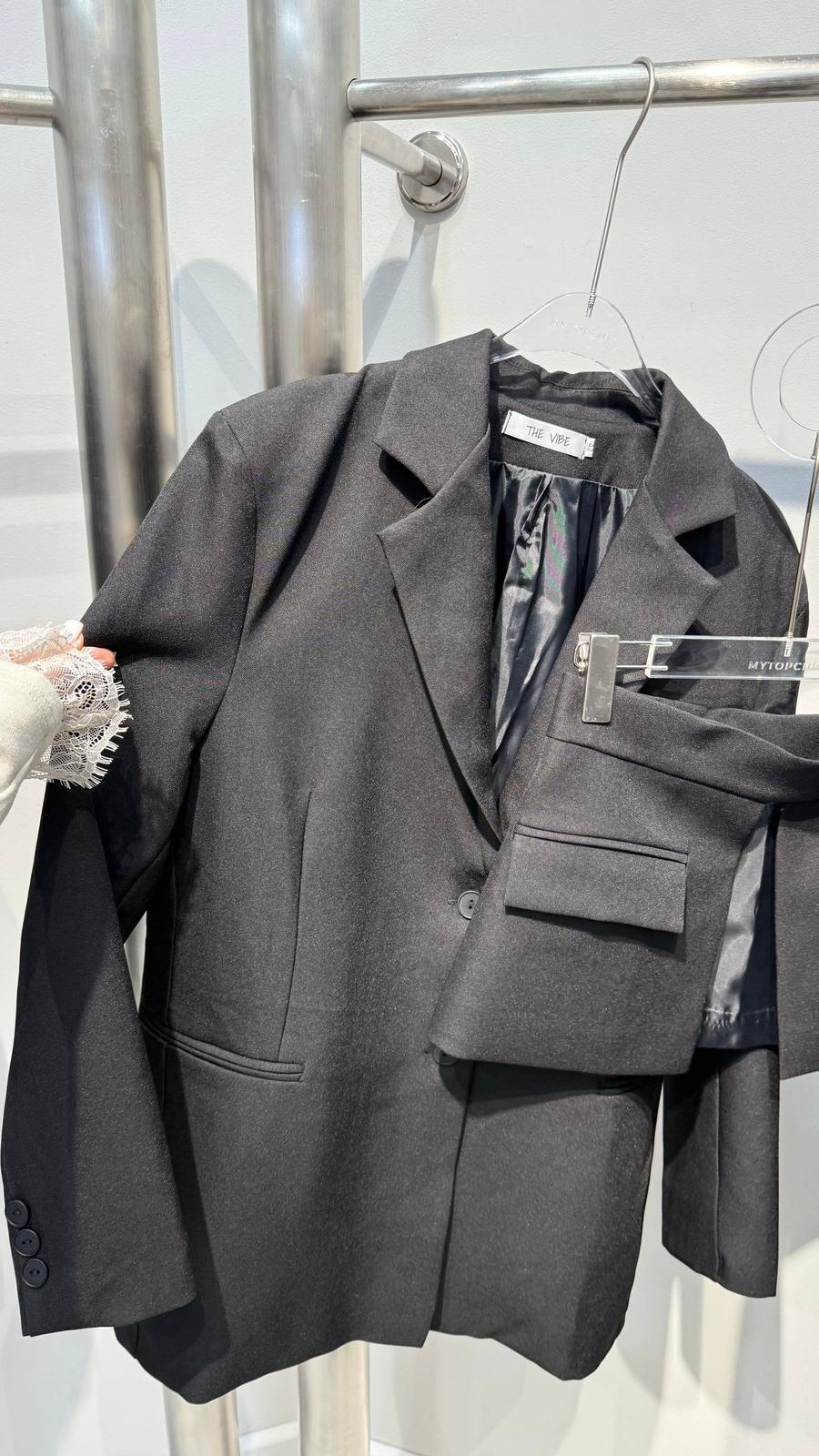 Ta marynarka została zaprojektowana tak, aby podkreślać talię i budować silną, ale zmysłową sylwetkę. Baskinka pięknie modeluje proporcje, nadając całości charakter fashion statement.