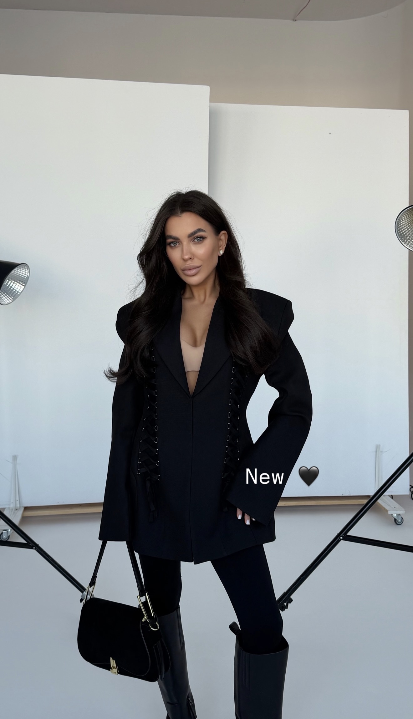 Wyrazista, mocna, absolutnie przyciągająca spojrzenia. Ta czarna marynarka to połączenie klasycznej elegancji z odważnym, fashion-forward krojem. Zaprojektowana dla kobiet, które lubią wyglądać stylowo, ale z charakterem.