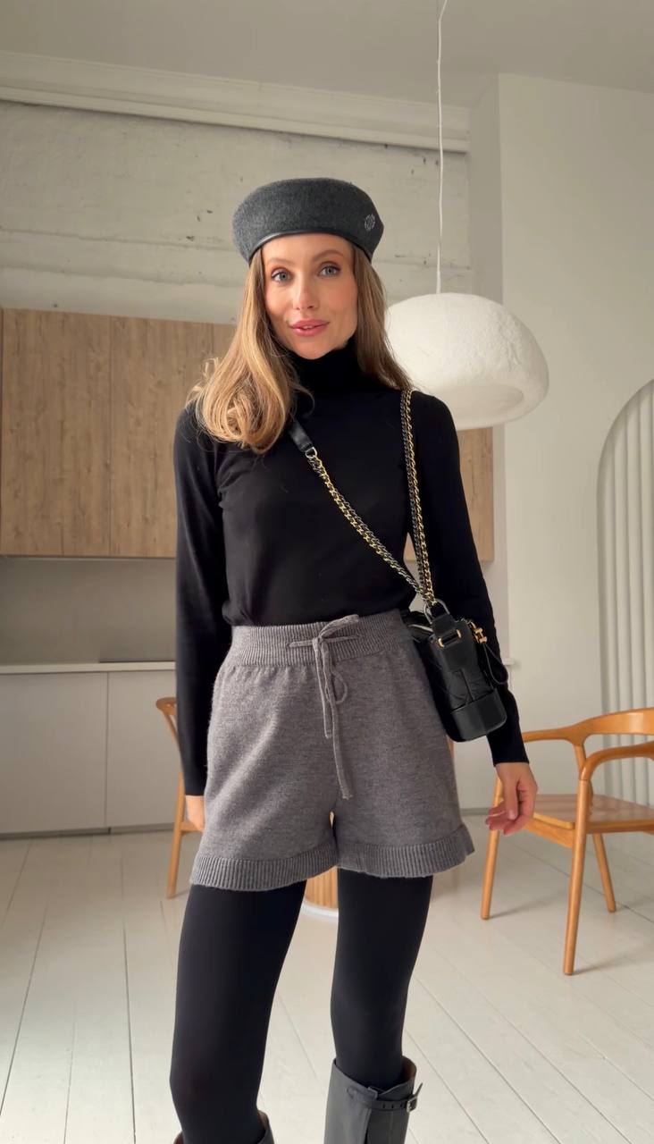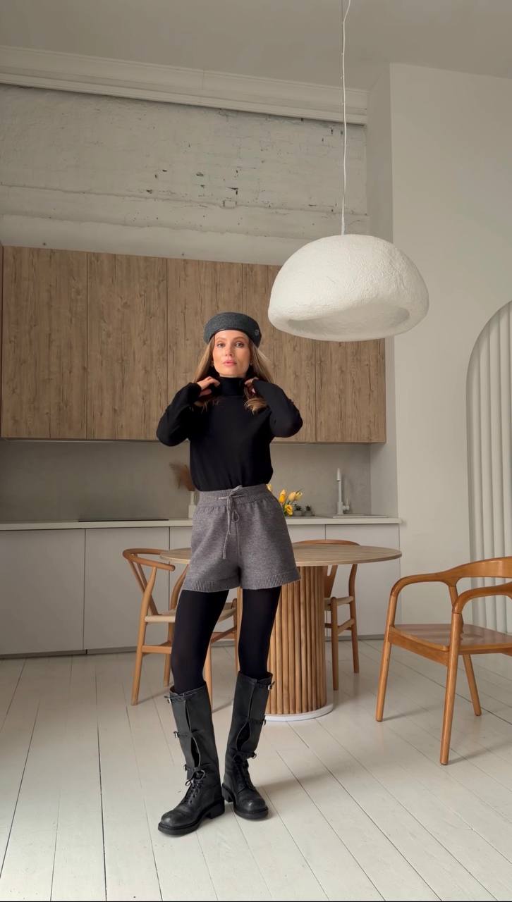Miękkie, dzianinowe spodenki stworzone z myślą o komforcie i stylu. Wykonane z przyjemnego w dotyku materiału o delikatnym splocie, pięknie układają się na sylwetce i zapewniają swobodę ruchów. Elastyczna talia dopasowuje się do figury, podkreślając jej kształt.
